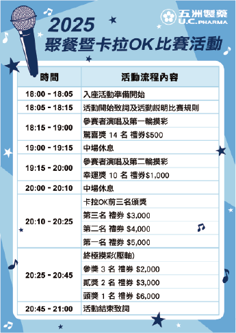 除了熱鬧非凡的卡拉OK比賽外,本次活動也安排了令人期待的摸彩環節,共有30項豐富獎項等著大家抽獎!